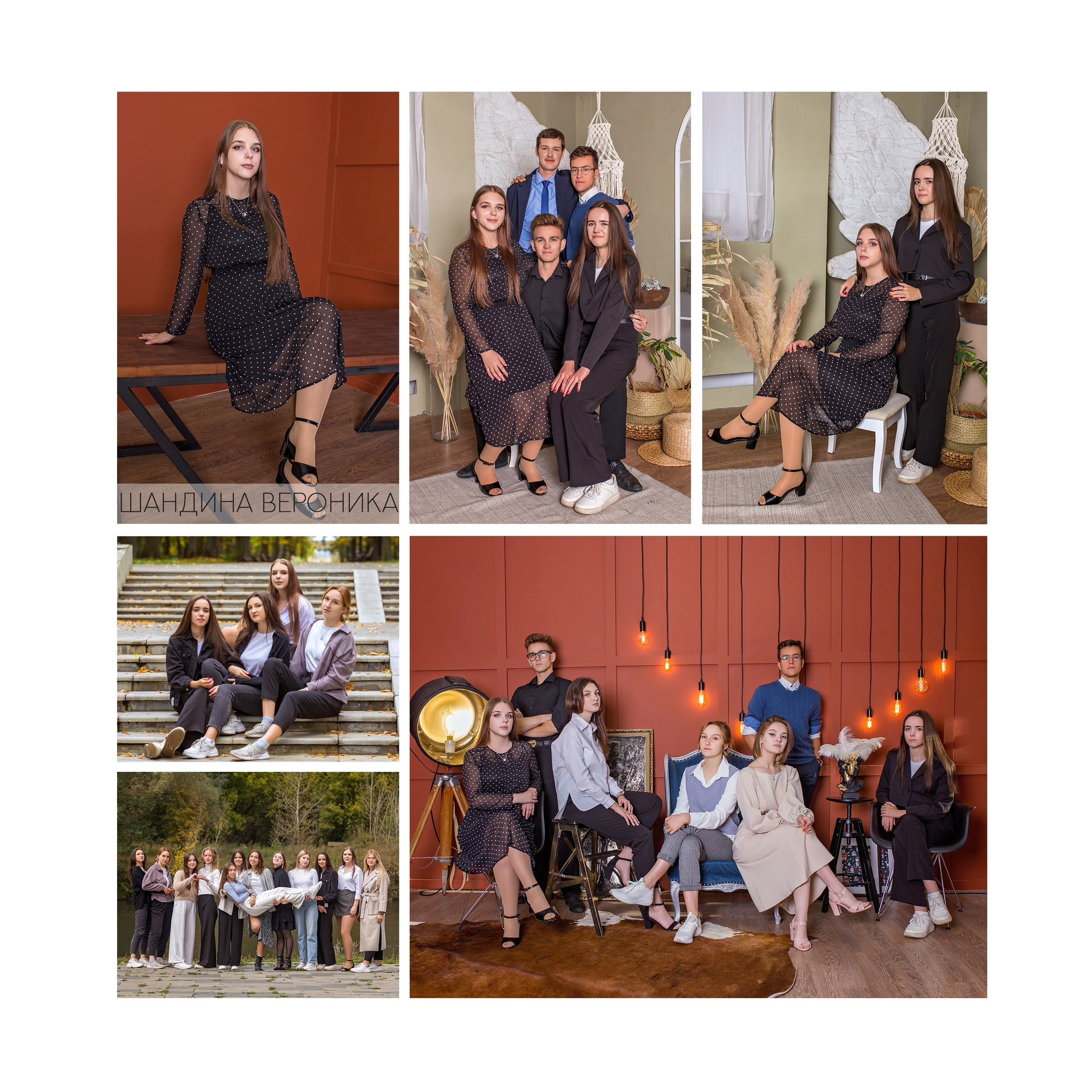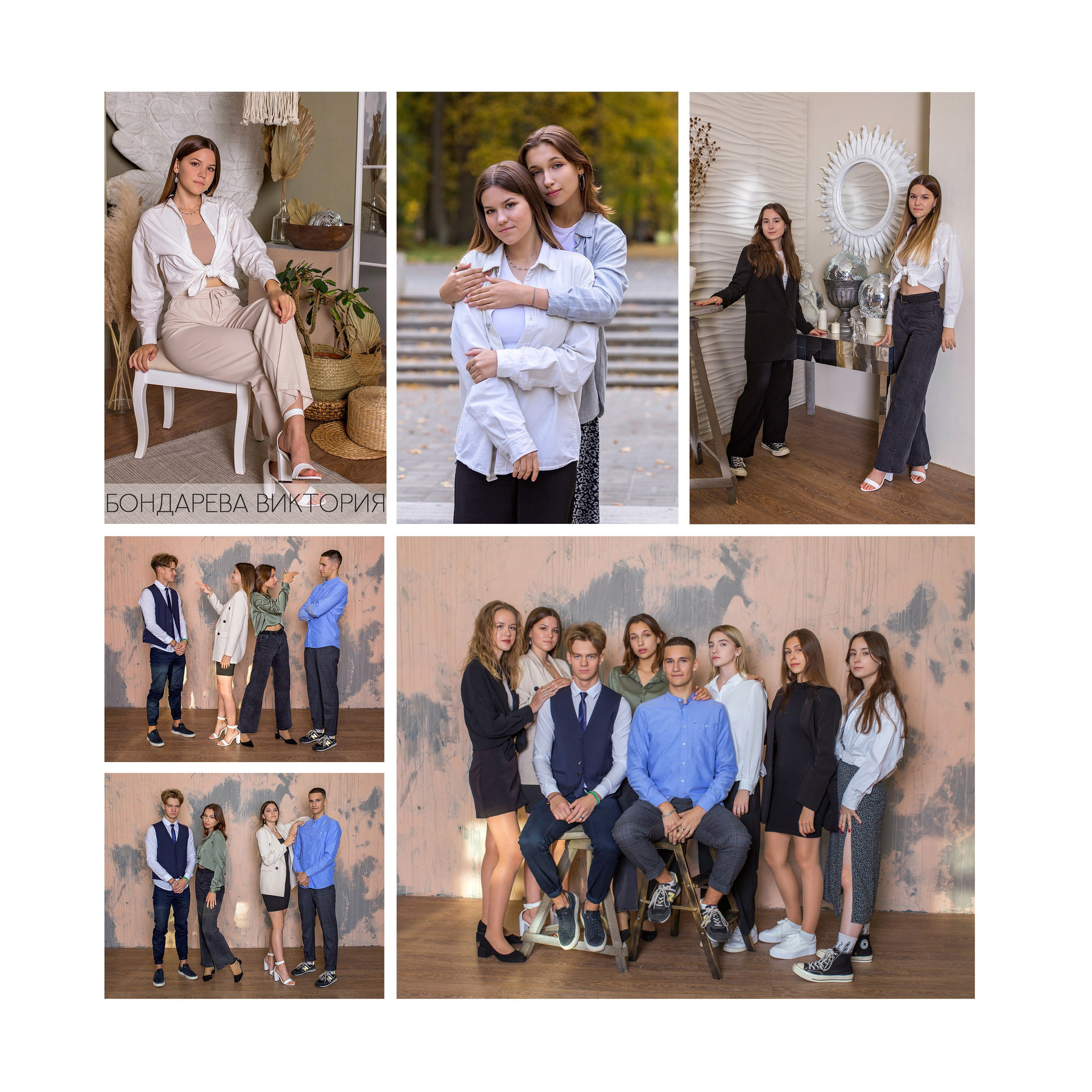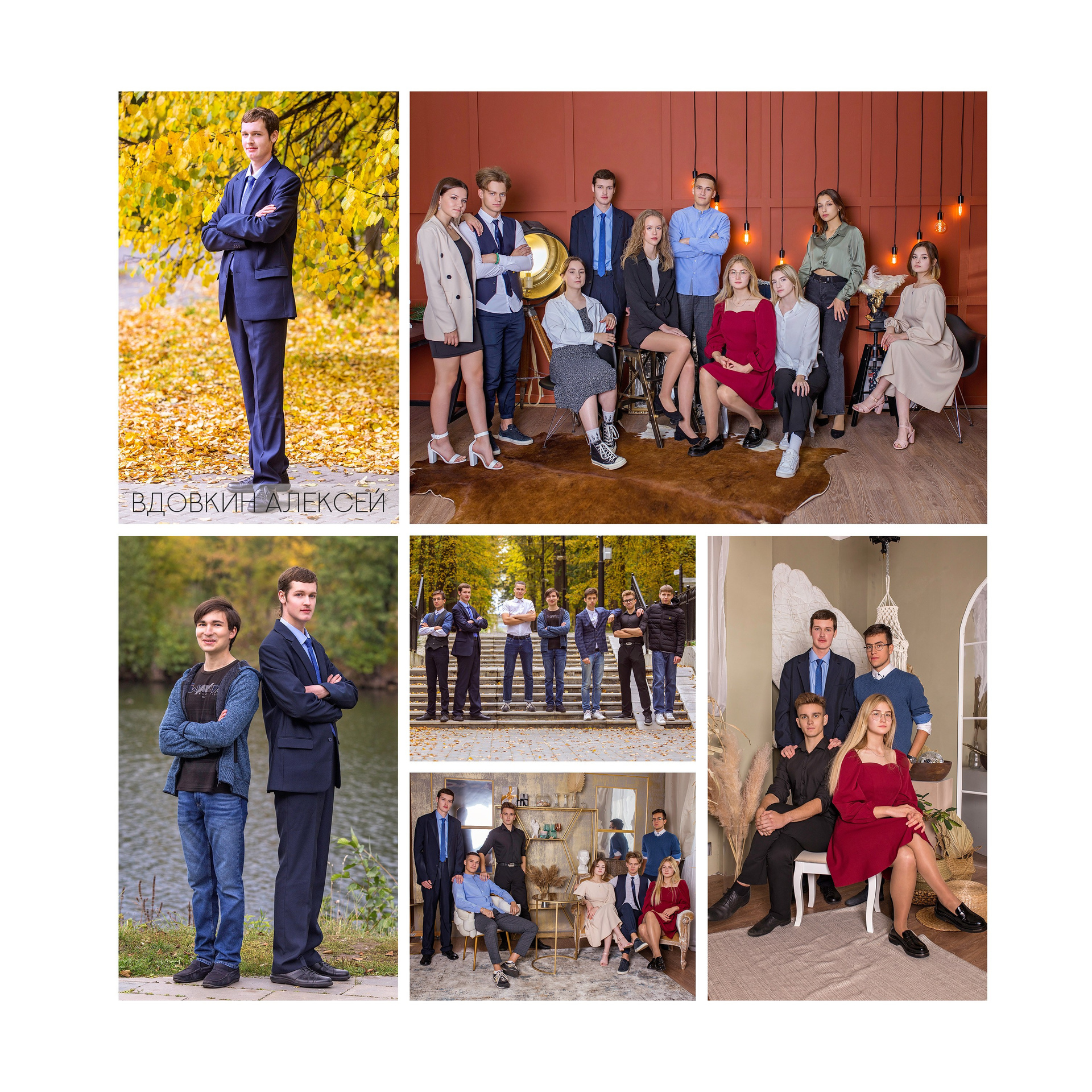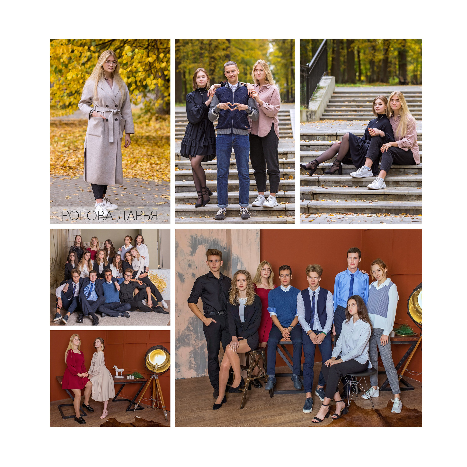 - Одна съемка в школе, на улице или в фотостудии (при необходимости аренда фотостудии оплачивается дополнительно). Можно организовать дополнительную съемку + 500 руб. с чел.