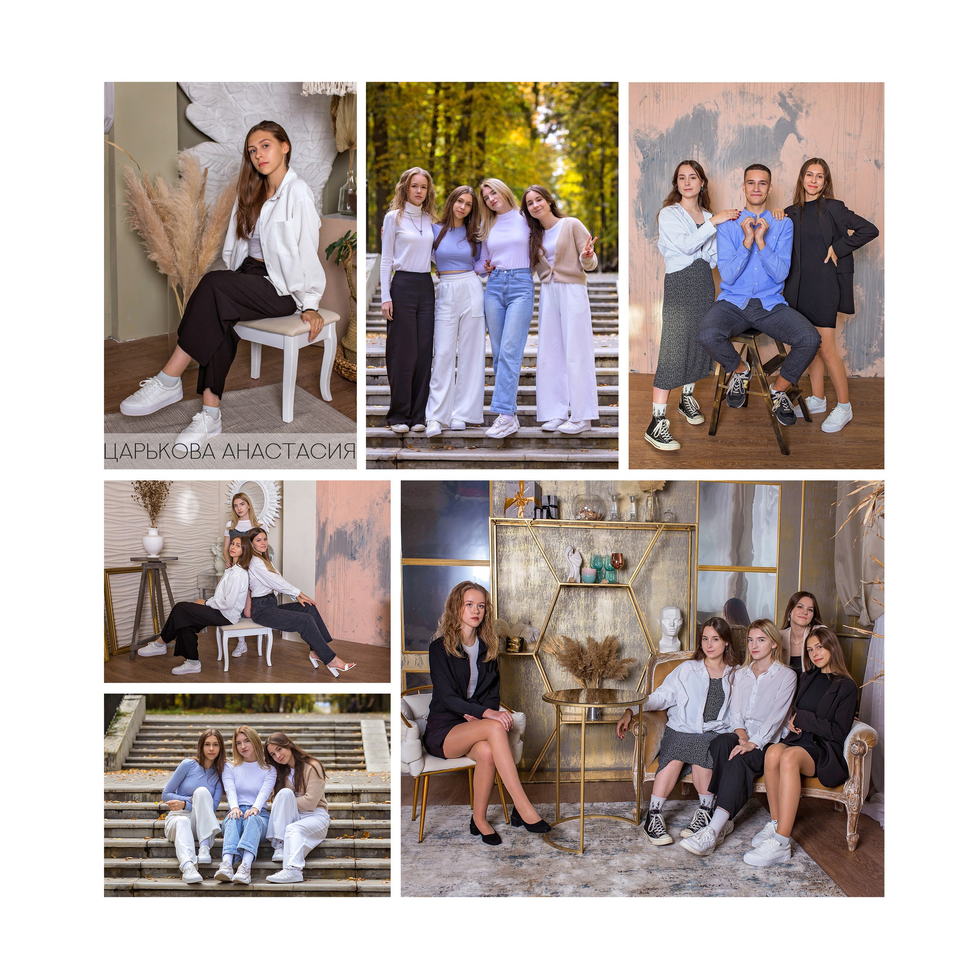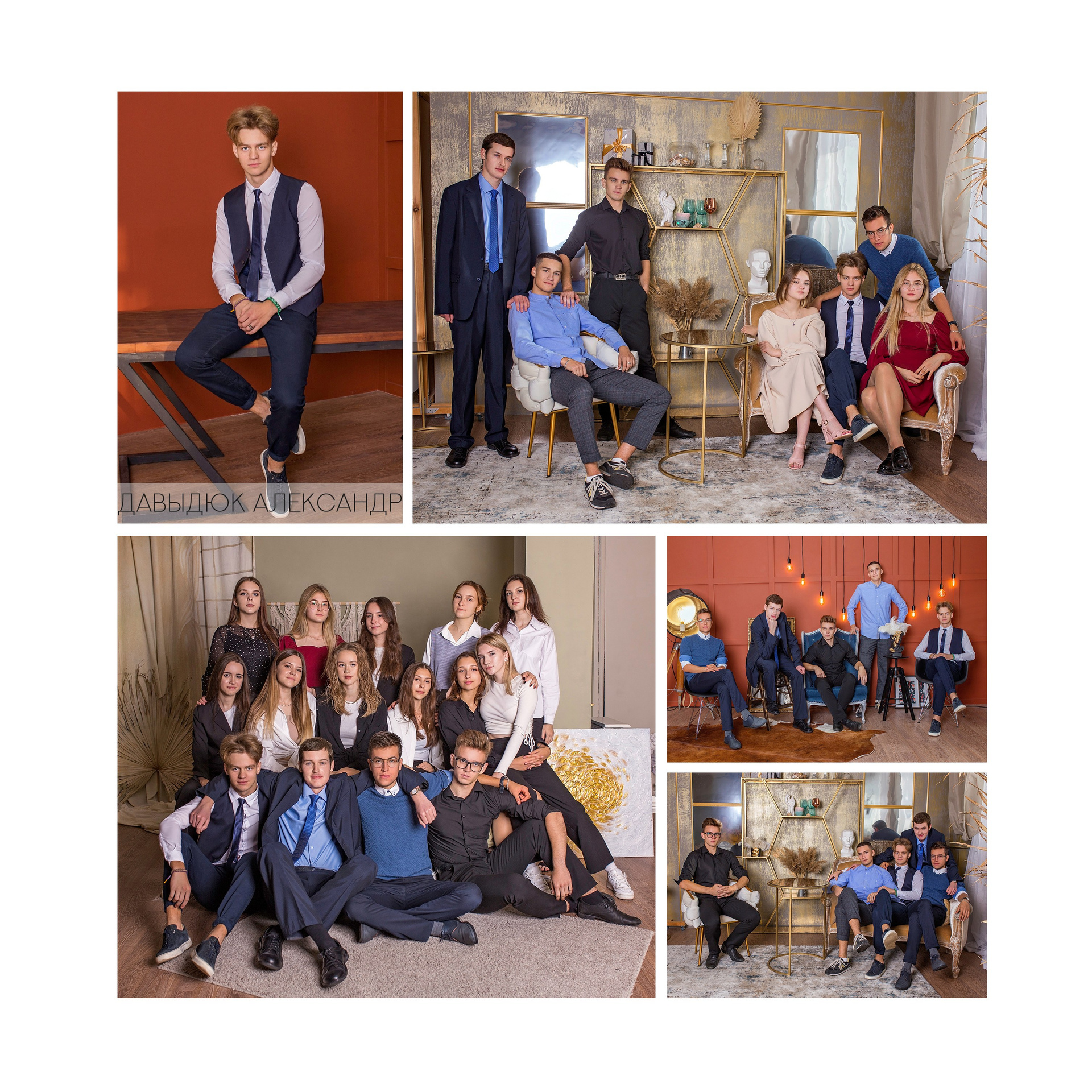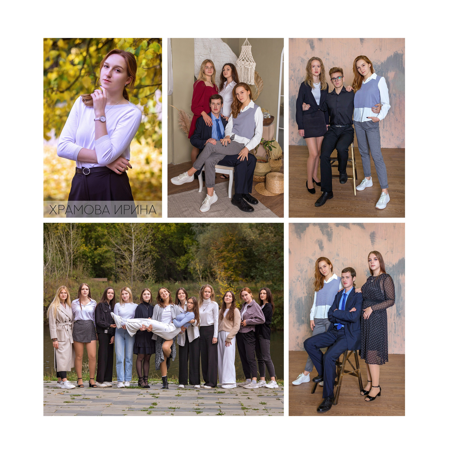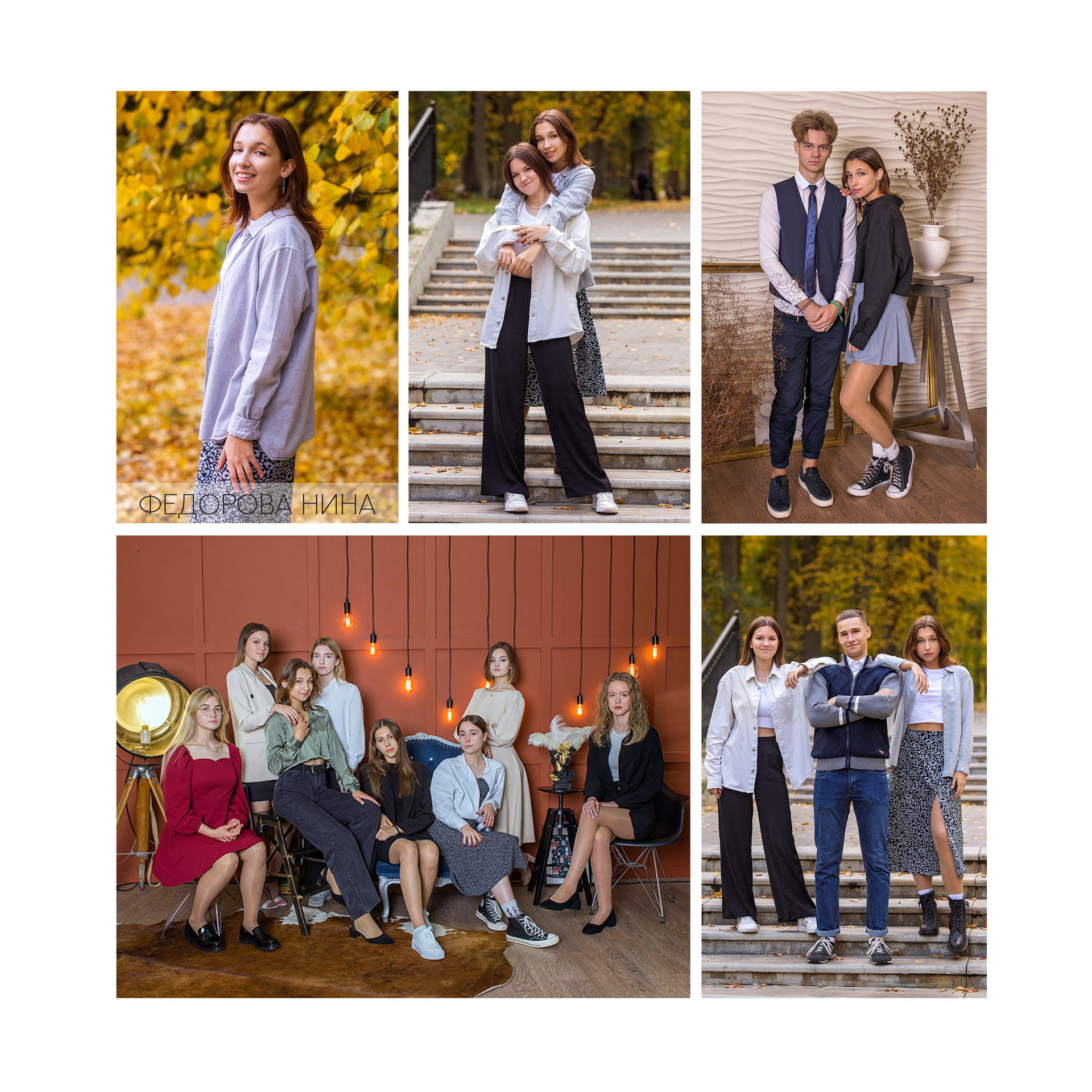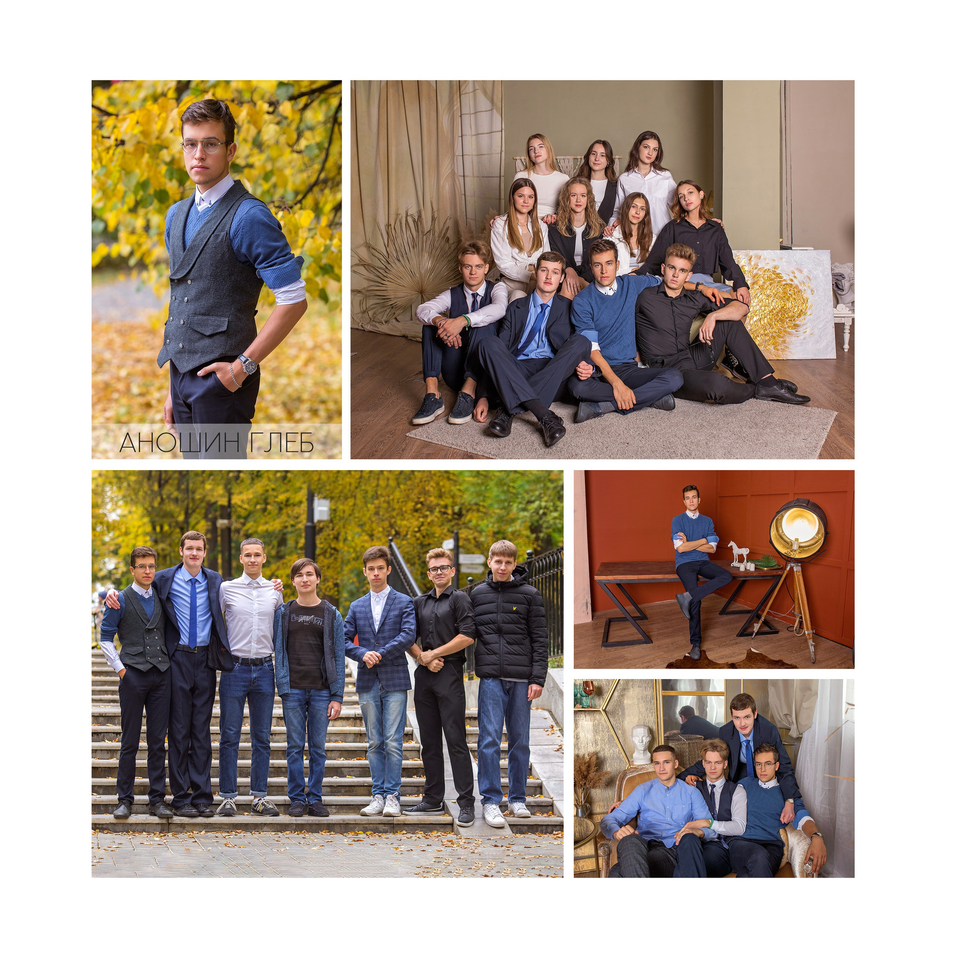 - Одна съемка в школе, на улице или в фотостудии (при необходимости аренда фотостудии оплачивается дополнительно). Можно организовать дополнительную съемку + 500 руб. с чел.