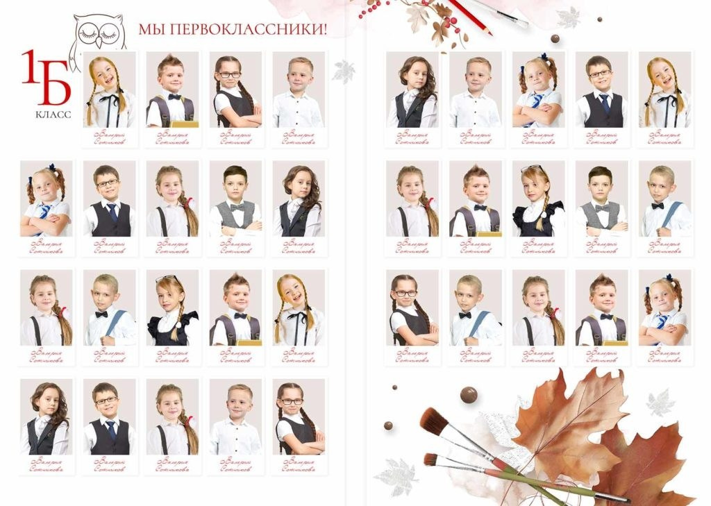- Общий альбом, одинаковый для всех, отличие в индивидуальном портрете выпускника на обложке.